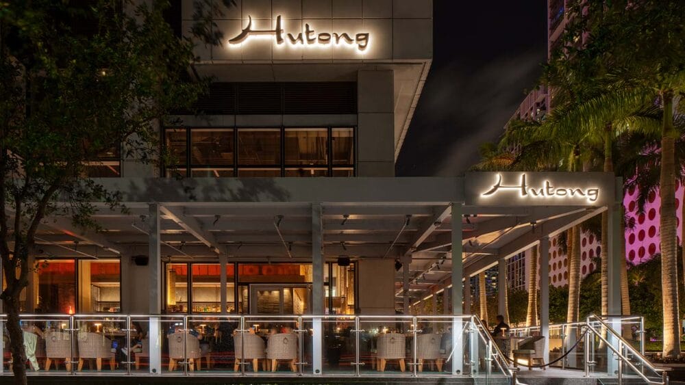 Hutong is a restaurant in the heart of Brickell that offers a unique take on Chinese cuisine. Its menu features occasionally fiery Northern Chinese dishes, served in a chic space that combines the vibrant Miami art scene with traditional Chinese design elements. Guests can enjoy Al Fresco dining on the outdoor terrace, decorated with greenery, cushioned seats and pillows, a covered awning and a lively atmosphere.