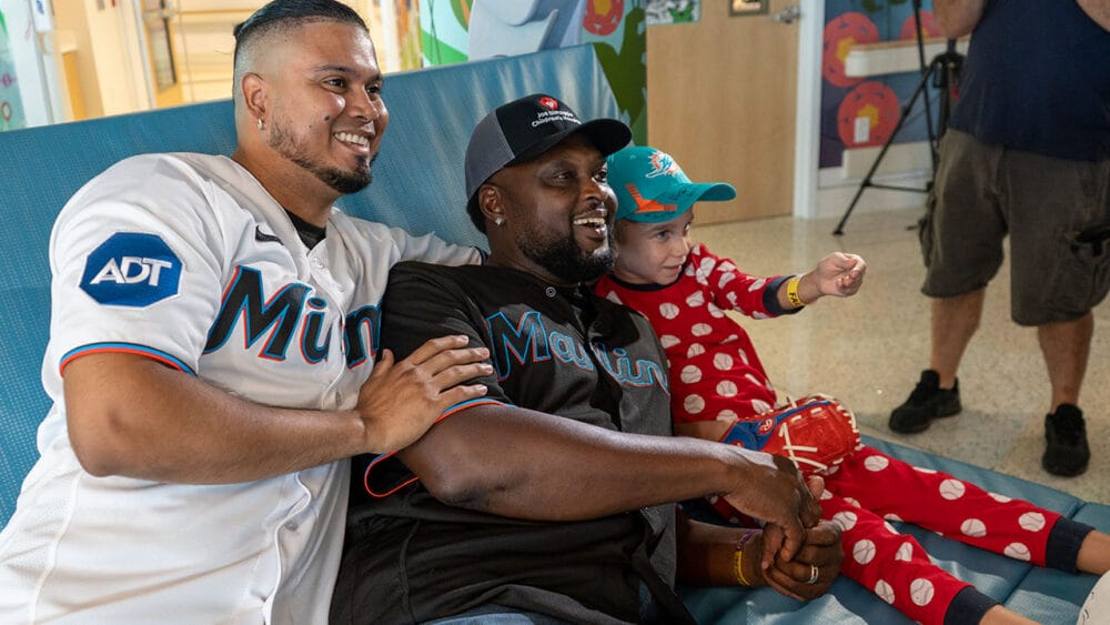 Marlins players spent time with children undergoing treatment at Joe DiMaggio Children’s Hospital.