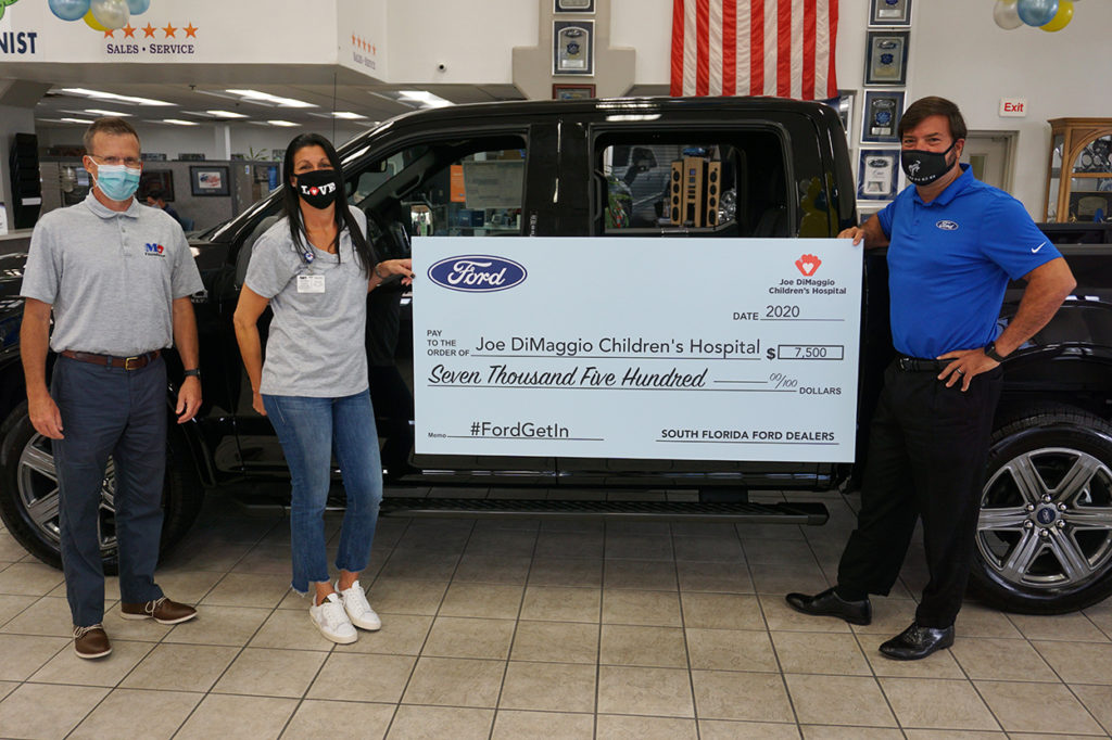 Get In and Give Back: The South Florida Ford Dealers Association recently presented a check for $7,500 to the Joe DiMaggio Children’s Hospital Foundation. The association launched a “Get in and Give Back” social media initiative, prompting local Ford owners to take a photo in their vehicle and share it on Facebook or Instagram with