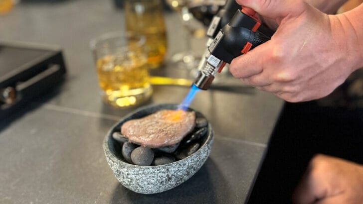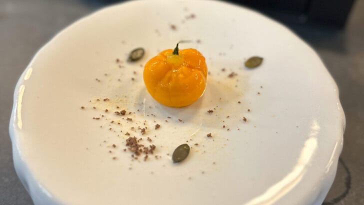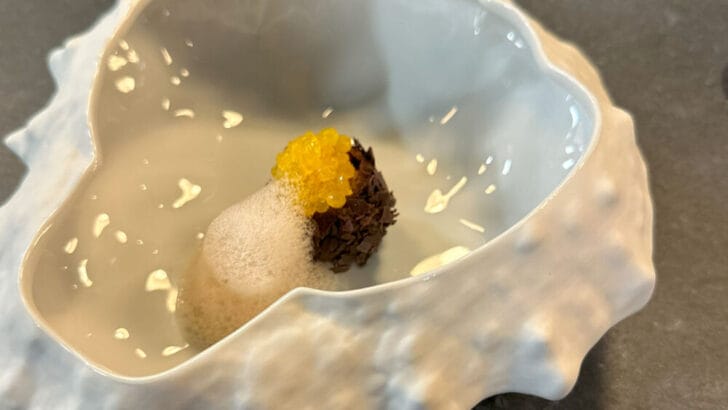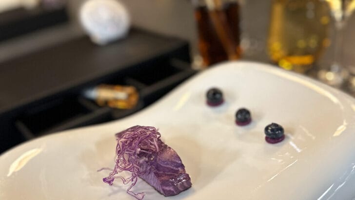 I had also been tipped off: Ken Muskat, the managing director of Scenic Group USA, had raved about Executive Chef Viktor Malek’s wizardry—from the flavors to the interactivity. He told me that we would be prompted to use the little instruments housed inside a literal toolbox, and I was intrigued.