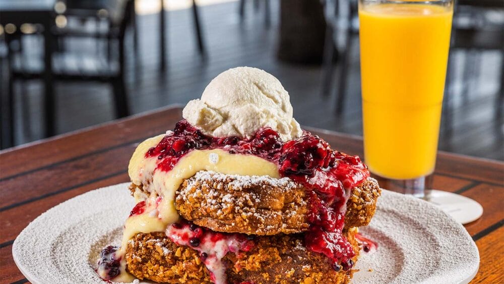 The Buzz: Drive up to YOT or better still, head over by boat and dock and dine to make the most out of the brunch experience with this prime location on the New River in the Lauderdale Marine Center. Wafting through the air is the smell of hot-out-of-the-oven fresh baked cinnamon buns and cinnamon bun bread pudding. Dare we say no one makes a brunch French toast like YOT – brioche bread is crusted with cornflakes and almonds, then smothered with berry compote and vanilla bourbon custard and topped with fresh whipped cream. Along with the usual Mimosas and Bloody Marys served at nearly every brunch, there are more choices here, including all-you-can-drink Aperol Spritzes and Rosé. Saturday and Sunday brunch hours: 11 a.m. to 4 p.m.