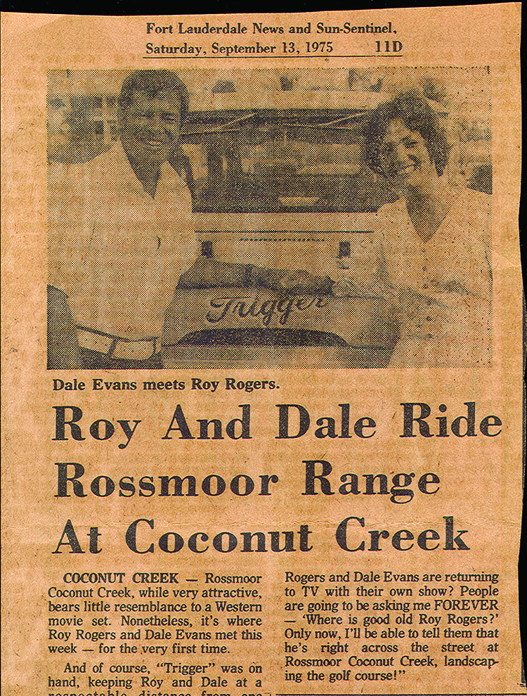 Though Roy Rogers never lived in Coconut Creek, he’s been so closely connected with the city that it’s almost like a second home.