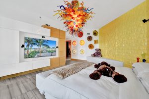Stunning spaces: More than $1 million was poured into the renovation of this two-story contemporary gem at Trump Hollywood. The list of finishes and custom furnishing reads like a who’s who of fashion design—with the likes of Versace, Cavalli and Chanel in the mix. Original Murano glass lighting and an eclectic mix of artwork adds to the unique splendor of the unit.