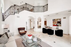 The story: Perched in the luxury enclave of Golden Gate Estates & Marina, this reimagined two-story estate charms with its mix of elegance and warmth. Set on a corner lot, and only a stone’s throw from the beach, the property is the only one in the neighborhood with an oversized driveway (parking for five cars). A wrought-iron staircase, chef’s kitchen, marble flooring and designer finishes add to the air of sophistication inside. The remodeled exterior features a pool and spa, a summer kitchen and a fire pit.