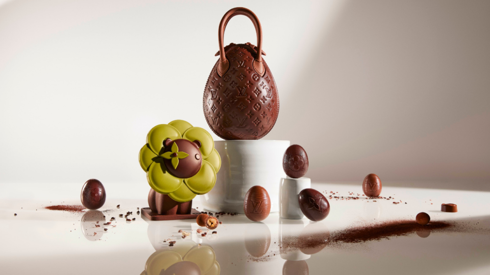 Louis Vuitton and Maxime Frédéric are debuting a new collection of Easter treats designed specifically for the occasion. For the first time, the “Chocolate Egg Bag,” inspired by the iconic 2019 design by Nicolas Ghesquière, has been transformed into chocolate. The bag’s shells are made from 70 percent dark chocolate, its zipper pulls and handles are made from 40