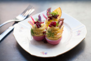 Patrons can choose from standout menu items, but Balli has his favorite pairing suggestions. For starters, he suggests the drunken deviled eggs and Grandma Daisy’s angel biscuits, paired with an Ella Fitzgerald, a cocktail with gin, Aperol, fresh lemon and angostura bitters. As a main dish, try the sweet tea-brined fried chicken along with a couple of sides, such as macaroni and cheese and the gooey, sweet corn spoon bread, paired with a Julia Sugarbaker—bourbon, peach, honey lavender, fresh lemon—or a local draft beer. There’s plenty more for dessert lovers, including the classic Key lime pie, or the aforementioned hummingbird cake, a traditional spice cake, made for sharing.